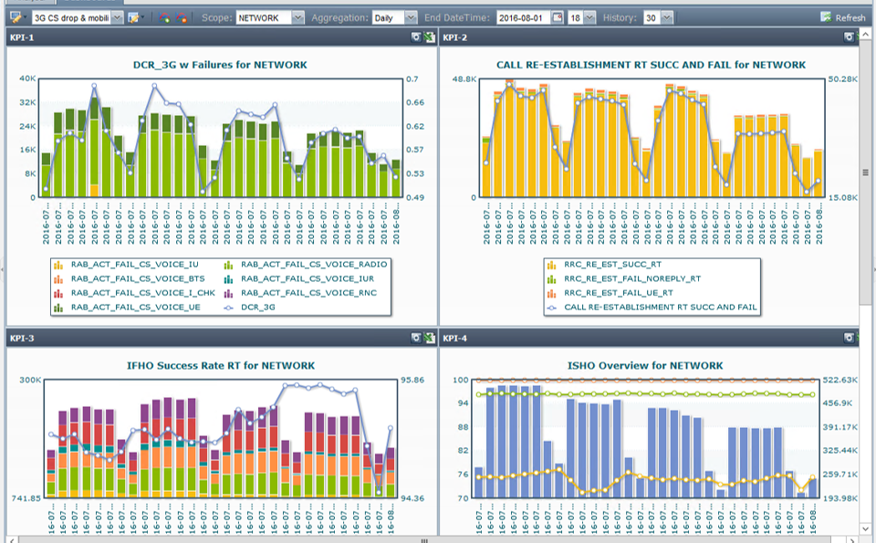 · Combine and correlate KPIs across 2G / 3G / 4G / 5G