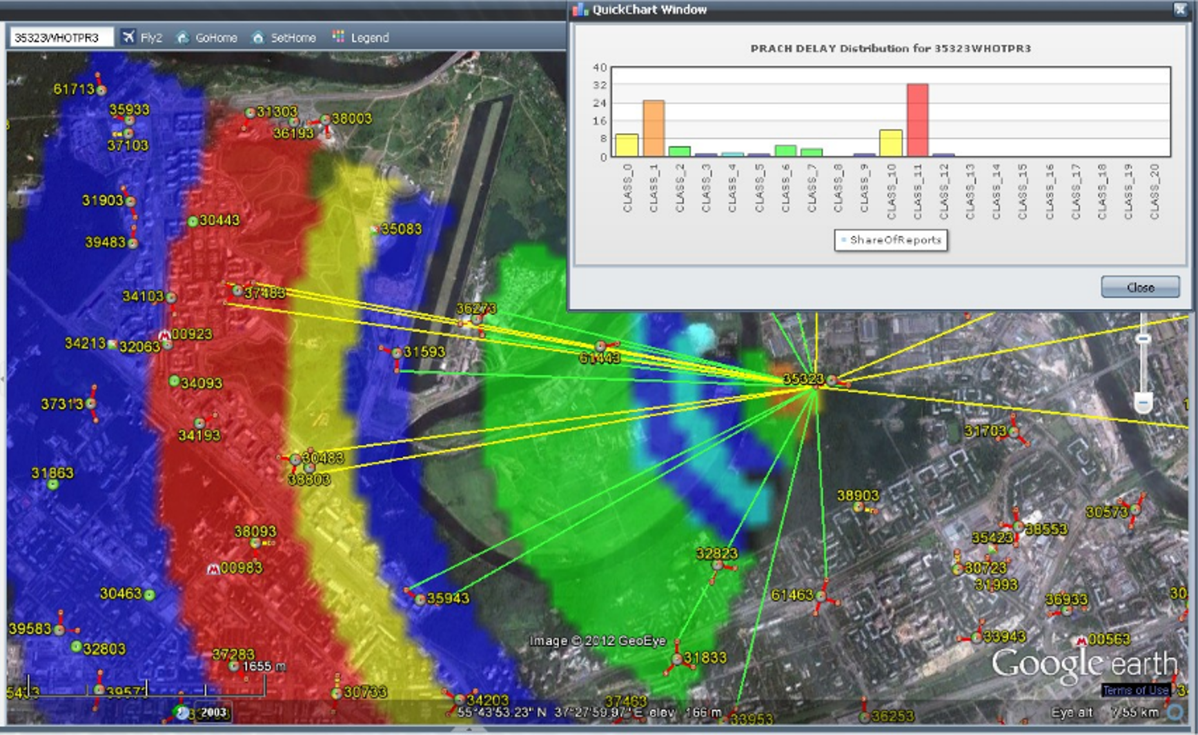 · Show customer distance to sites, antenna power projections, and line-of-sight on a single map
